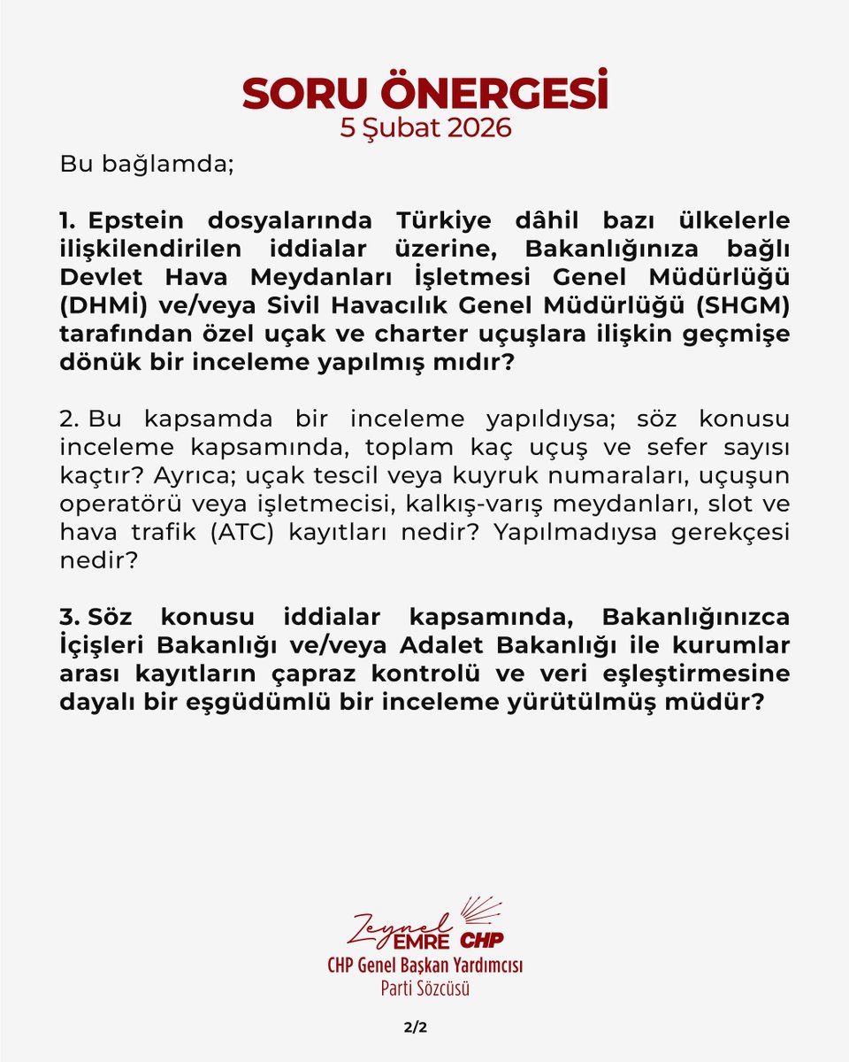 • Epstein dosyalarında adı geçen kişi ve ağlarla bağlantılı özel jet ve charter uçuşlar Türkiye’de incelendi mi?