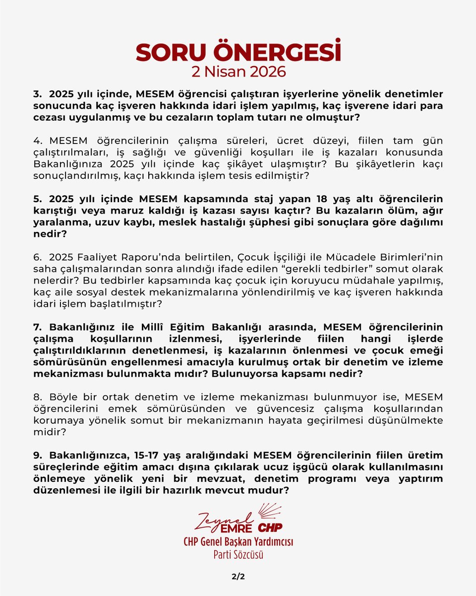 CHP Genel Başkan Yardımcısı, Parti Sözcüsü, İstanbul Milletvekili Zeynel EMRE